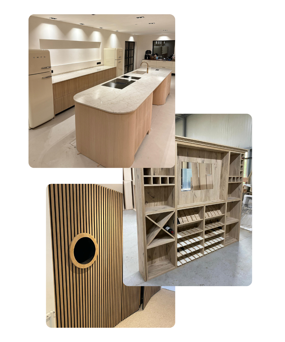 Ontdek een selectie van onze maatwerkprojecten en laat je inspireren door de mogelijkheden. Van luxe barren tot cinewalls en buitenkeukens: dit is waar onze passie voor design en vakmanschap samenkomt.